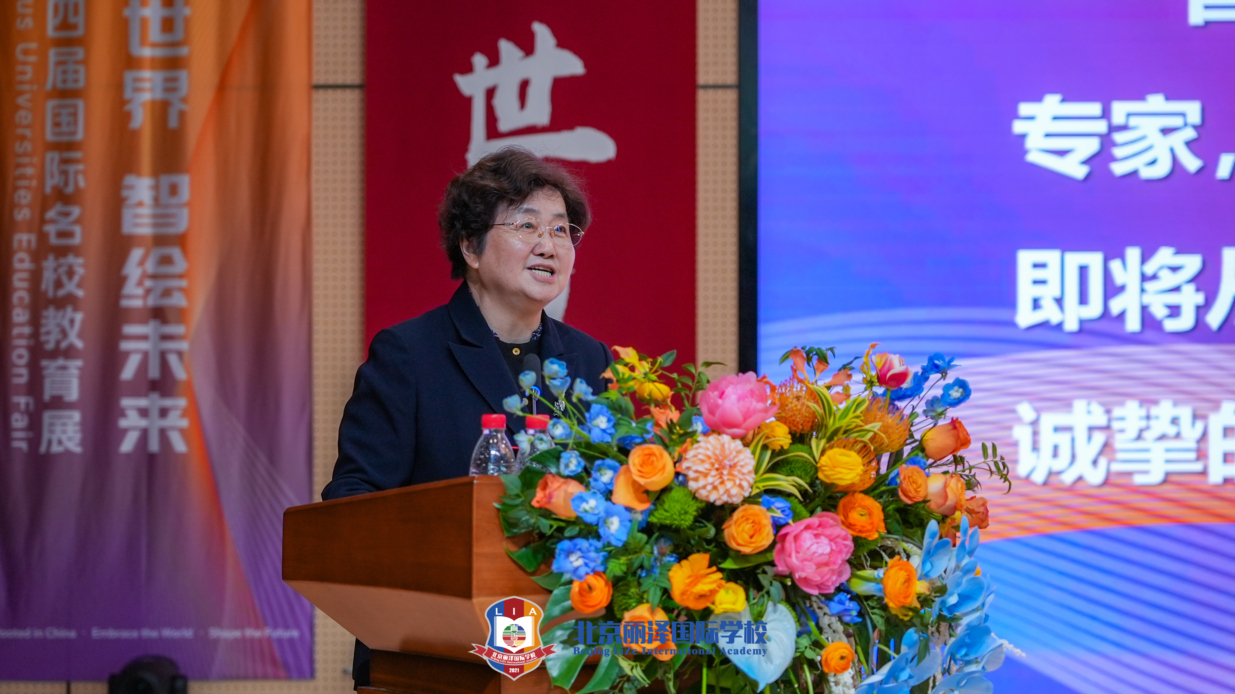 李有毅在北京丽泽国际学校第四届国际名校阐发展上致辞。受访者供图