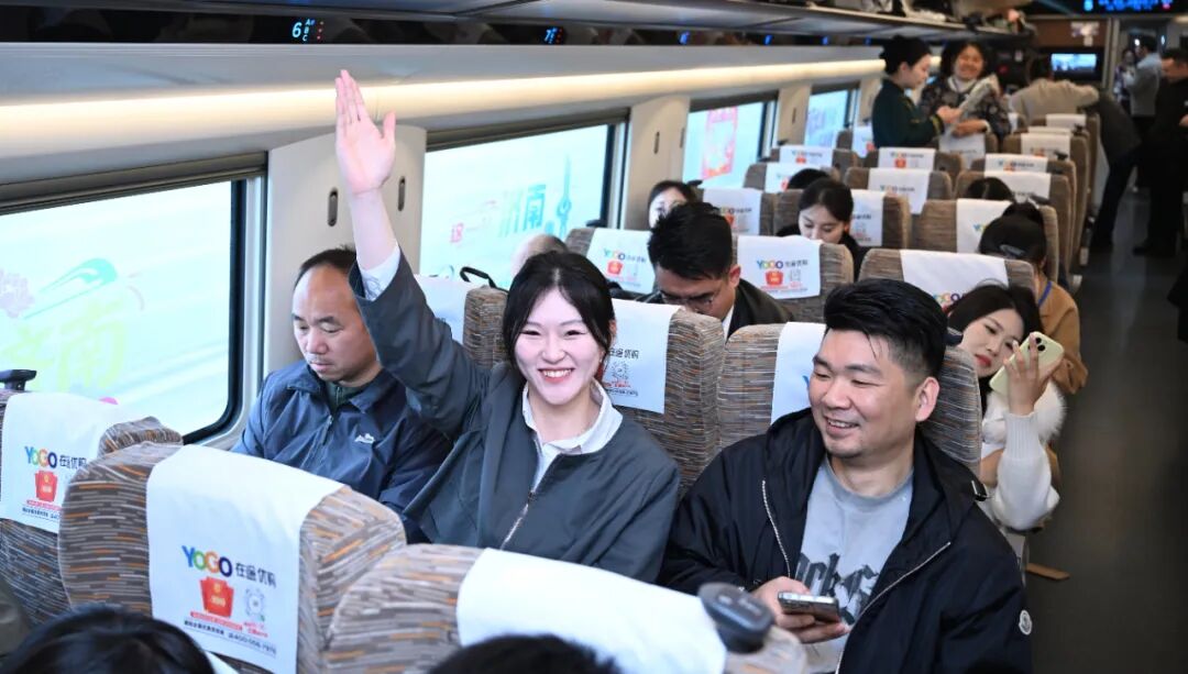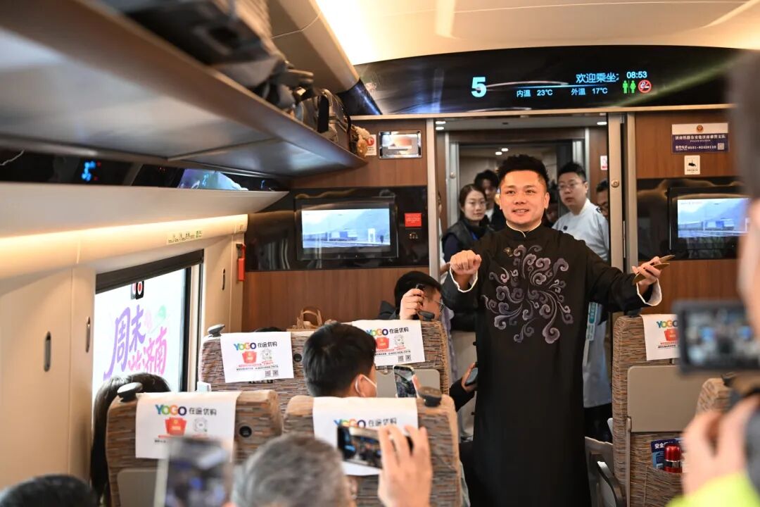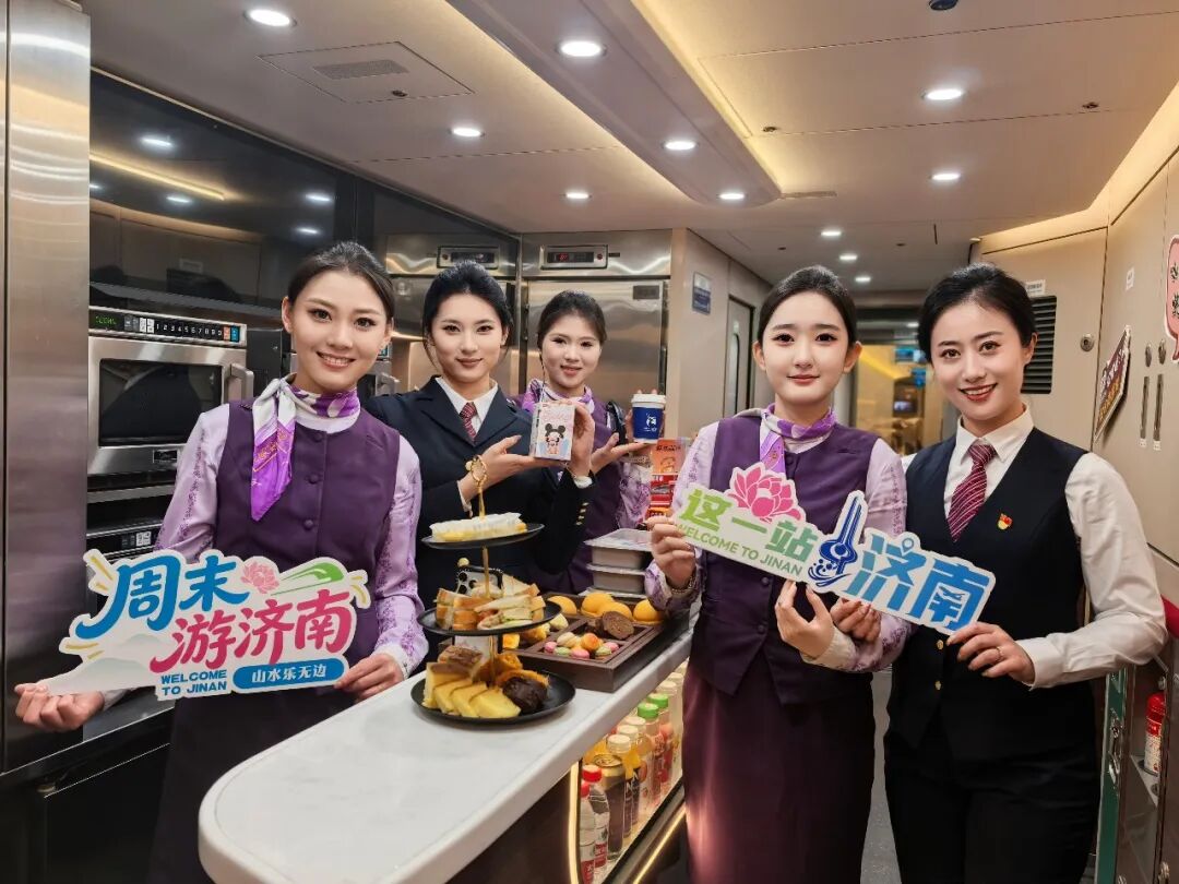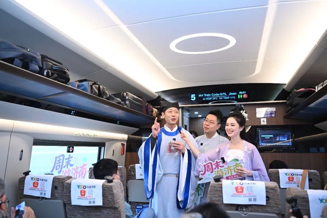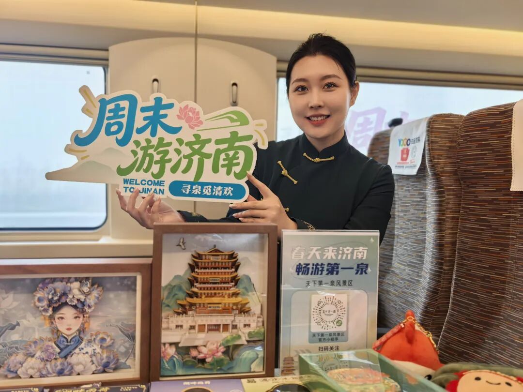 3月31日,“周末游济南”高铁主题营销行径在济南来回上海的G75/G76次列车上举行。本次行径由济南市文化和旅游局辘集国铁济南局济南客运段、山东中铁文旅发展集团、济铁旅行职业有限公司共同主理。飞奔于京沪大动脉的列车化作“挪动文旅会客厅”,以一场集非遗演艺、城市文创、好意思食物鉴、互动游戏于一体的千里浸式推介,向长三角游客发出“这一站,济南”的春日邀约。