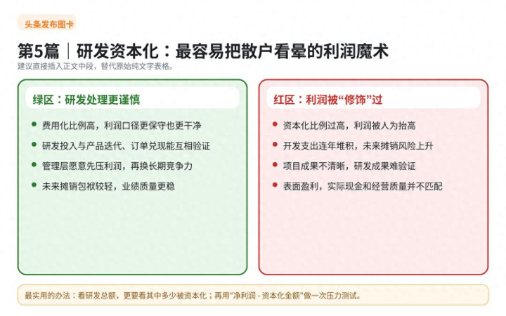 3. 别只看“研发占比高不高”,还要看“如何记账”;研发很高但老本化也很高,有时真有你念念象得那么塌实。