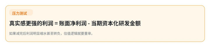 2. 我方作念一次减法:账面净利润减去当期老本化研发金额,看利润会不会昭彰缩水。