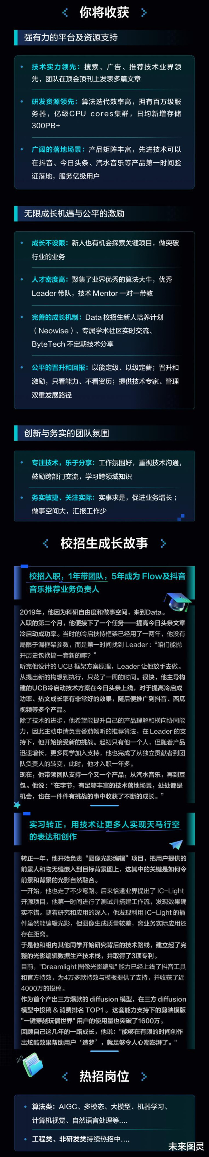 横向对比国内大厂,字节在东谈主才薪酬、算力等各方面的资源进入肯下大资本,能看到字节作念 AI 的决心和愿景更强。当前也处于 Seed 缔造早期,加入之后的红利可念念而知。