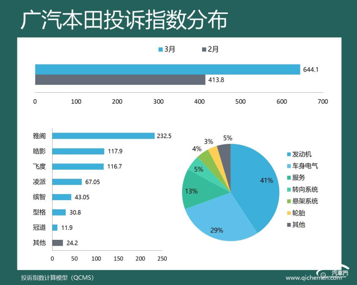 汽车质料投诉点评:由于多家车企本月投诉指数暴增,广汽本田本月滑落到了车企投诉榜的第五位。从投诉数据来看,广汽本田本月投诉指数增幅相对较低,而况也未出现围聚投诉,投诉依然以老问题为主。飞度发动机异响、皓影遮阳帘卡口断裂、凌派发动机正时皮带掉毛仍然是广汽本田被吐槽最多的三个问题。