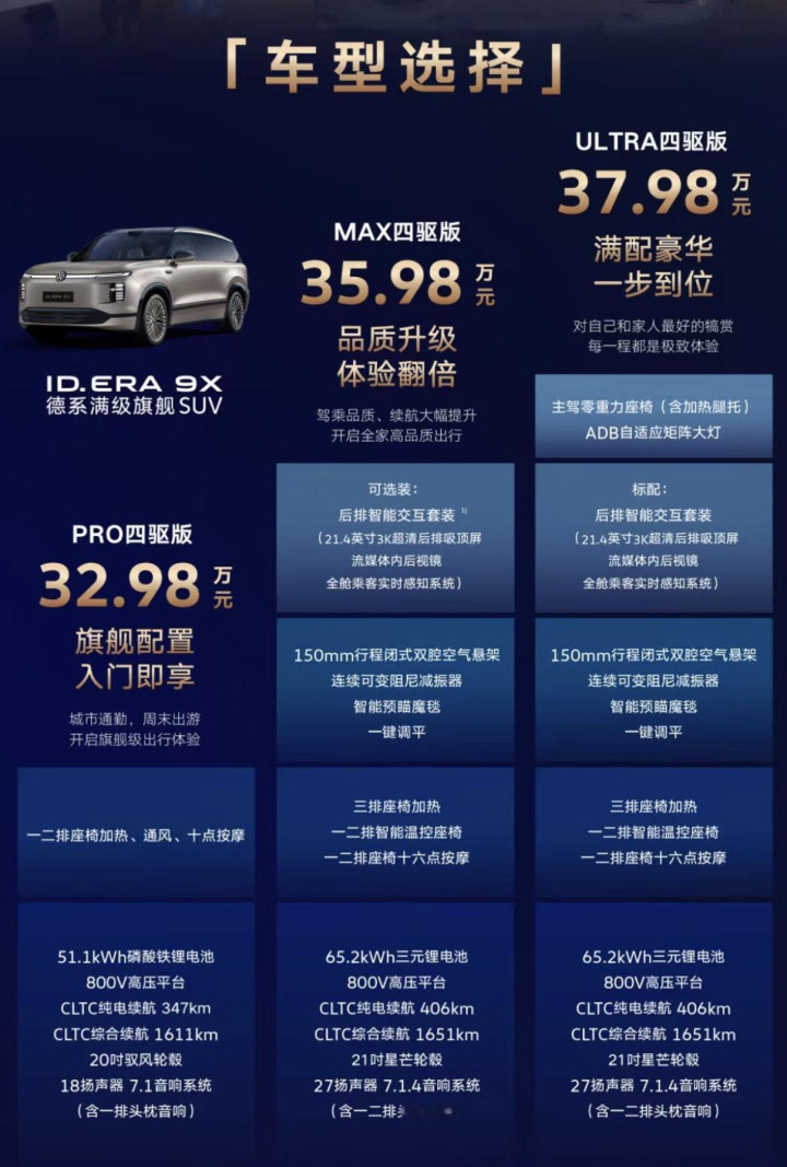 3月30日,上汽各人ID.ERA 9X开启预售。价钱为32.98-37.98万元。驾仕派插足发布会后的媒体群访,咱们梳理了对于这款重磅家具的9个要点: