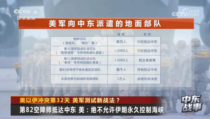 据路透社3月30日报谈,好意思军第八十二空降师下辖快速反映部队也启动抵达中东。该部队未必在接到敕令后18小时内从基地启航,引申在敌后夺取关键据点的任务。