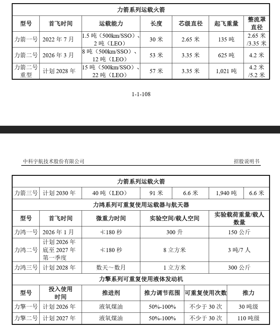中科宇航也在招股书中败露了各线产物的首飞时代表,力箭二号重型计议于2028年首飞、力箭三号计议于2030年首飞,可复用劲鸿二号计议于2026年底至2027年一季度首飞、力鸿三号计议于2028年首飞。