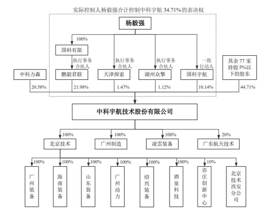 把柄招股书,中科宇航鞭策共计82名,公开采行前捏股5%以上的有鹏毅君联(21.98%),中科力森(SS)(20.58%)和国科宇航(10.14%)。杨毅强通过鹏毅君联限度21.98%的股份表决权;动作职工捏股平台天津探索、湖州众擎的实践事务合鞭策说念主,通过天津探索、湖州众擎折柳限度1.47%、1.12%的股份表决权;郑军通过国科宇航限度10.14%的股份表决权,并与杨毅强签署《一致行动东说念主左券》,整个限度34.71%股份表决权。 同期,中科力森也已出具《对于不谋务本色限度东说念主地位的声明与甘愿》。