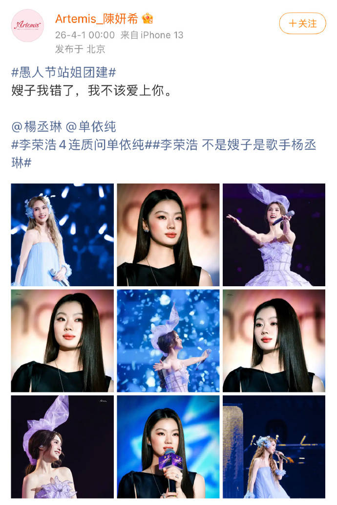 这位以拍摄陈妍希举止著名的站姐,此番操作让网友直呼“看不懂”。配文中“嫂子”一词,既可能指代杨丞琳,又暗含对单依纯的“越界”嘲谑,被质疑刻意蹭两位艺东说念主近期热度。有网友叱咤:“愚东说念主节不是无底线玩梗的挡箭牌!站姐为流量连基分内寸齐不要了?”也有粉丝嘲谑:“站姐这是‘移情别恋’了?陈妍希粉丝集体‘失恋’?”
